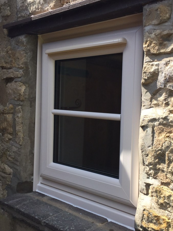 cream woodgrain with astragal bars & monkey tail handles
