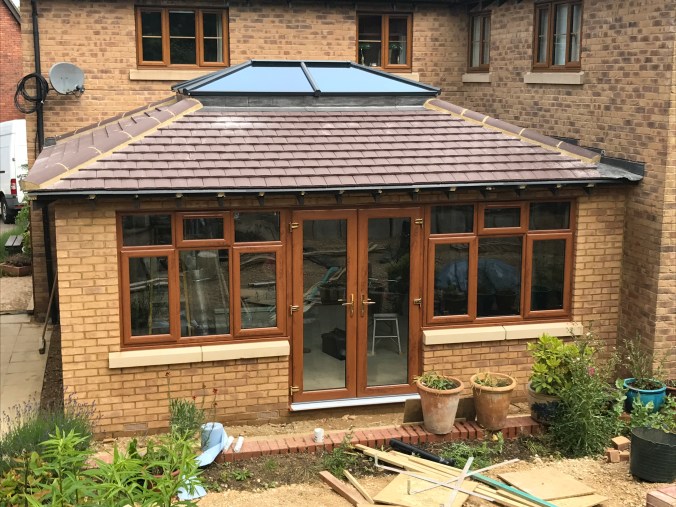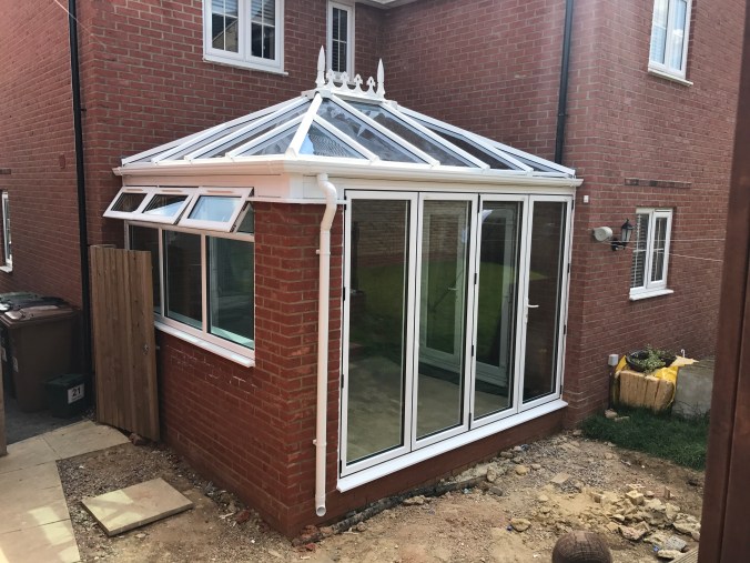Conservatory with bi-fold doors & box gutter