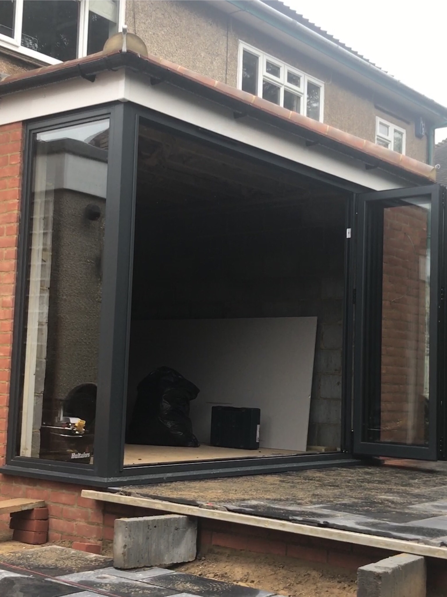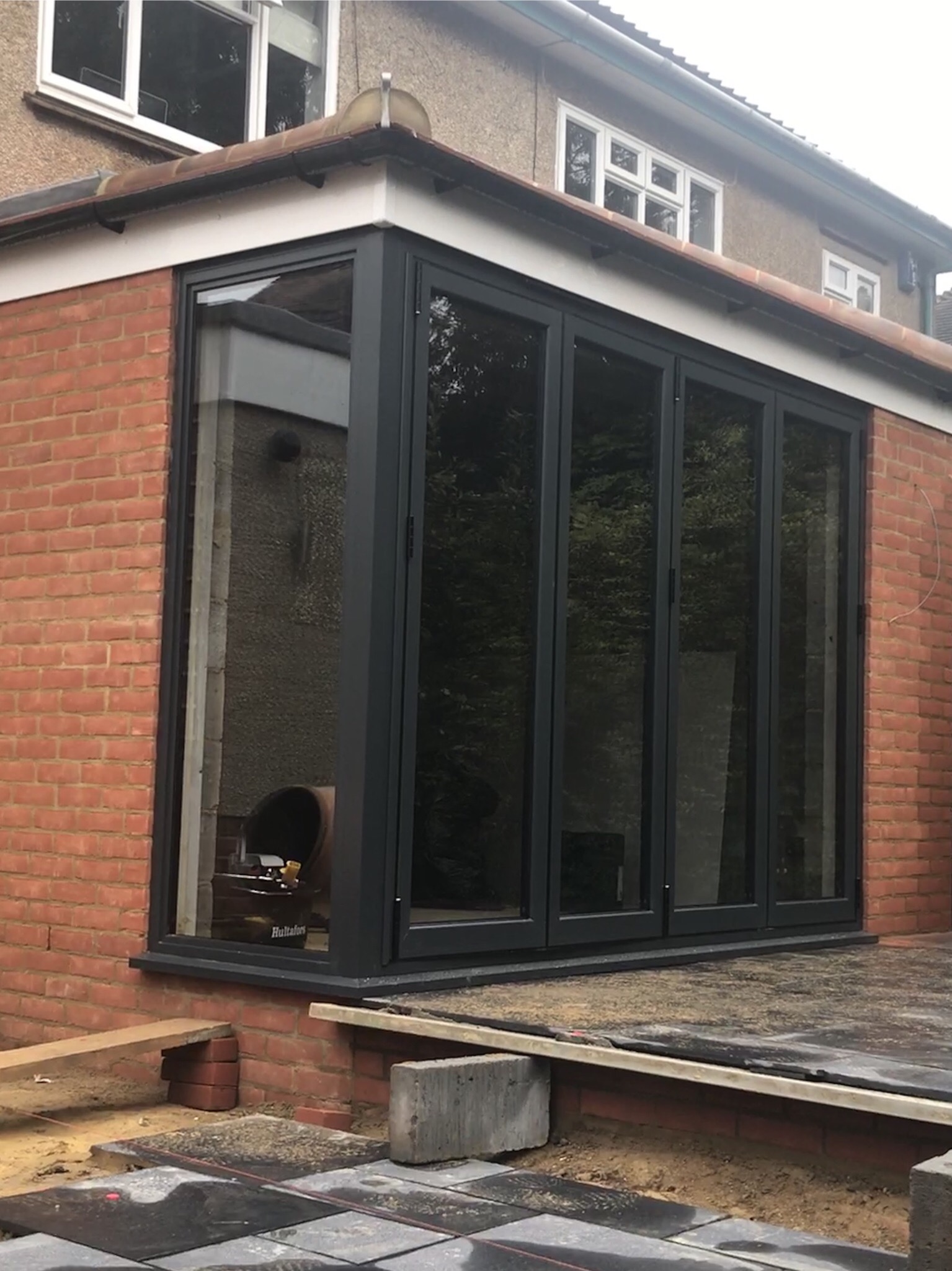 Aluminium bi fold doors Anthracite grey Ral colour 7016